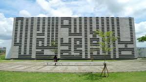 Fasad yang terbentuk tampil dengan tekstur yang menyerupai micro-chip, ini merupakan suatu karya abstrak grafis yang diilhami oleh penemuan paling andal dari perkembangan ilmu pengetahuan elektronik modern.